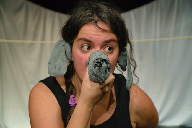 Bubù è il solo maschietto della famiglia e, poichè le sorelle sono troppo piccole per aiutare coi lavori di casa, i genitori gli chiedono di occuparsi del bucato e lavare tutti i calzini. Il lavoro è noioso e ben presto Bubu inizia a raccontarsi una storia. Così, i calzini si animano e finiscono col diventare animali di ogni colore, che abitano nella giungla e che raccontano le vicende di un elefantino dal piccolo naso. Grazie alla sua curiosità e intraprendenza, sarà il primo elefante ad avere una lunga proboscide. La scenografia è essenziale, fatta di un pannello bianco che fa da sfondo, gli oggetti di scena sono pochi, perlopiù calzini colorati che nelle mani di Margherita Molinazzi diventano animali animati, protagonisti di una storia all’insegna di immaginazione, sorpresa e musica.