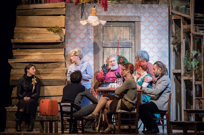 Immaginare Lello Arena, con la sua carica comica e umana, nei panni del papà – interpretato da Panelli nel film di Monicelli – mi ha fatto immediatamente sorridere, tanto da ipotizzare il suo sguardo, come quello di un bambino, intento a descrivere ed esplorare le dinamiche ipocrite e meschine che lo circondano, in quei giorni di santissima festività: è un genitore davvero in demenza senile o è un uomo che non vuol vedere più la realtà e si diverte a trasformarla e a provocare tutti? Andando via di casa, diventando adulti, ogni figlio ha dovuto fare i conti con la realtà, ha dovuto accettare i fallimenti e ha imparato a difendere il proprio orticello mal coltivato, spesso per incuria o incapacità, ma in quelle pause di neve e palline colorate ognuno di loro si impegna a mostrarsi spensierato, affettuoso e risolto. All’improvviso però, i genitori, fino ad allora autonomi punti di riferimento, esprimono l’esigenza di essere accuditi come hanno fatto anni prima con loro: uno dei figli dovrà ospitarli e prendersi cura della loro vecchiaia… a chi toccherà? All’improvviso, dunque, un terremoto segna una crepa nell’immobilità rassegnata di un andamento ormai sempre lo stesso e in via di spegnimento, una crepa dalla quale un gas mefitico si espanderà e inquinerà l’aria. Sarà la soluzione più spicciola e più crudele a prendere il sopravvento. Verità? Paradosso? Spesso, come si è soliti dire, la realtà supera la fantasia. Ciò mi ha spronato ad affrontare questo testo che ha la peculiarità rara di fotografare uno spaccato di vita famigliare sempre assolutamente attuale, purtroppo. Si può far ridere nel raccontarlo e sorridere nell’assistere alle spumeggianti gag ma, allo stesso tempo, non ci si può riflettere sopra senza una profonda amarezza, magari scoprendo – per contrasto – la possibilità di una maggior coerenza nei rapporti e negli affetti, così da ricordarsi le meravigliose responsabilità che un cordone ombelicale come quello tra genitori e figli impone. Viviamo in un’epoca in cui i valori, primo fra tutti il rispetto, stanno pian piano sparendo e l’egoismo sta prendendo decisamente il sopravvento sulla carità umana e sulla semplice, fondamentale, empatia. Prima o poi saremo tutti dei vecchi bambini bisognosi di cure, perché trasformarci in soprammobili polverosi, inutili e ingombranti?
