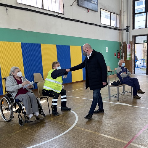 Questa mattina il presidente della Regione Stefano Bonaccini è stato in visita al nuovo centro vaccinale di Budrio, aperto oggi negli spazi della palestra della scuola media locale. Si tratta del secondo hub per il paese in provincia di Bologna, e ha in programma nelle prime tre settimane di attività una media di 300 somministrazioni al giorno riservate agli over 75, con una operatività dalle 8 alle 14.