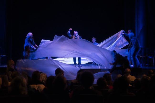 “L’Eneide di Virgilio è la storia di gente alla ricerca di un posto dove rinascere” leggiamo dalle note di regia, “di rifugiati in fuga dalla guerra che usano la tragicità di quell’esperienza come strumento di autodeterminazione. Migrazione, sofferenza subita e causata, il crollo di una civiltà, un viaggio all’inferno… La storia del nostro Paese e la storia del mondo”.
