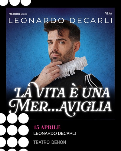 Leonardo Decarli, tra i primi youtuber italiani, cantante, attore, conduttore tv e speaker radiofonico, con una community di oltre 2 milioni di followers tra Instagram e TikTok, in scena al Teatro Dehon di Bologna mercoledì 15 aprile ore 21 con il suo nuovo show: “La vita è una mer…aviglia“, prodotto da Vera Produzione.
