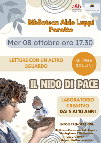 FERRARA – Si intitola “Il nido di pace” il libro che, mercoledì 8 ottobre 2025 alle 17:30, alla biblioteca comunale Aldo Luppi (via Arginone 320, Porotto), sarà protagonista di una lettura animata per bambini, a cura della stessa autrice Milena Gollini, che utilizzerà la tecnica del kamishibai per facilitare la comprensione e la comunicazione dei piccoli ascoltatori. Alla lettura, seguirà un laboratorio manuale e creativo.