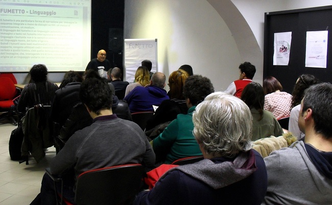 (foto di una lezione condotta dall’esperto fumettotecario Gianluca Umiliacchi)