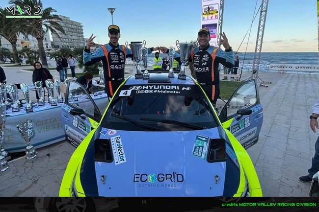 L’appuntamento pugliese vedeva il portacolori di Motor Valley Racing Division, in coppia con Valerio Silvaggi sulla Hyundai i20 Rally2 di Friulmotor, ritrovare ben presto lo smalto visto nella capitale, inserendosi in terza posizione assoluta al termine del primo crono del Sabato.