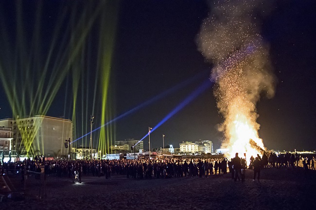 RICCIONE (RN) – Con uno spettacolo di luci, musica e fuoco la città di Riccione ha inaugurato sabato sera l’anno dedicato allo sport in occasione del tradizionale appuntamento con il falò che saluta l’inverno per dare il benvenuto alla primavera.
