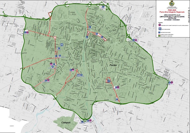 Le misure antismog adottate dal Comune di Parma sono collegate al PAIR – Piano Aria Integrato Regionale –, che prevede limitazioni alla circolazione per i veicoli più inquinanti nei centri urbani dei Comuni con più di 30 mila abitanti ed in quelli dell’agglomerato urbano di Bologna, dal 1 ottobre al 31 marzo, dal lunedì al venerdì, dalle 8.30 alle 18.30 e nelle domeniche ecologiche.