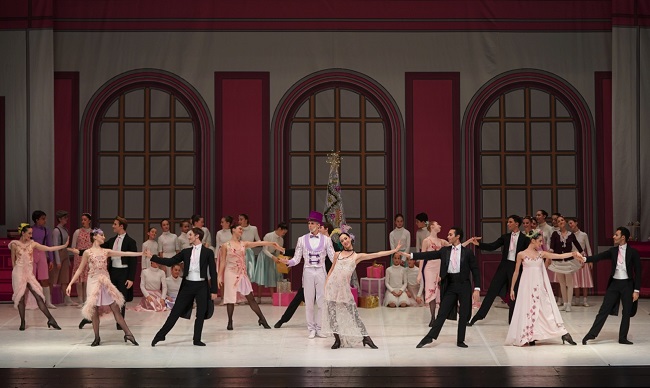 Bellissima la mise en scène di Marco Pesta, dallo stile anni ’20 dai toni pastello del salone della festa natalizia dove domina luccicante l’albero di Natale, all’onirica atmosfera dei fiocchi di neve, all’esplosione di colori per le danze del divertissement e del celeberrimo Valzer dei Fiori. Appare abbagliante la coppia dei protagonisti, in una coreografia ricca di virtuosismi che ne sottolinea l’eccezionale bravura.