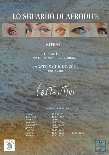 CORIANO (RN) – Sabato 5 giugno, alle ore 17.00 al Teatro CorTe di Coriano inaugura la mostra di ritratti “Lo sguardo di Afrodite” del pittore riminese Pier Antonio Costantini.