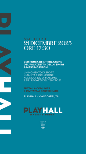 Al termine dello show di Natale, che sottolinea il forte legame di Pironi con il mondo sportivo cittadino, è prevista la cerimonia solenne. Alle ore 17:30, il palazzetto dello sport di viale Carpi assumerà ufficialmente la denominazione di “Playhall Massimo Pironi”.