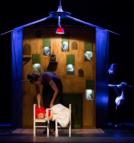 Lo spettacolo è realizzato con l’ausilio di pupazzi costruiti da esperti artisti e artigiani che si sono occupati anche della scena che riproduce l’interno di una casa che “forse è una gabbia o forse una voliera così grande che ci si può abitare dentro”.
