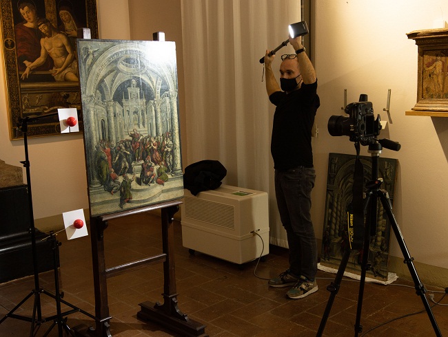 La documentazione fotografica ottenuta con Rti ha consentito di capire lo stato conservativo della superficie pittorica evidenziando sollevamenti, distacchi di colore e vecchi restauri. Le immagini ottenute si configurano come strumento fondamentale di lettura di aspetti e danni altrimenti non visibili ad occhio nudo. La particolare tecnica a “sgraffito” ha reso la documentazione Rti particolarmente adatta anche per apprezzare la qualità del sapiente disegno su lamina che connota le architetture e la costruzione prospettica in generale. È stato inoltre possibile leggere correttamente la data accanto alla firma “Hyeronimus Coma de Mutina pinxit 1563 Adi X Genaro” del dipinto raffigurante “L’arresto di San Paolo” che fino ad oggi era interpretata come 1562, data invece presente nell’altra opera in pendant.