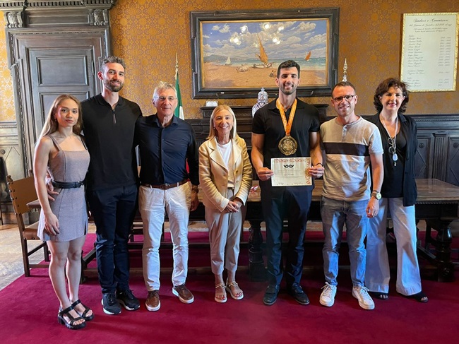 CATTOLICA (RN) – Ha portato la Regina sul tetto del mondo del Natural Body Building and Fitness Italy. Il cattolichino Luca Ferretti si è aggiudicato il titolo massimo della disciplina, laureandosi campione mondiale. Lo scorso anno aveva messo in bacheca la medaglia del campionato europeo. E al ricco palmares si è aggiunto anche il riconoscimento da parte della sua città. La Sindaca Franca Foronchi e l’Assessore allo sport Federico Vaccarini lo hanno ricevuto a Palazzo Mancini, in sala Giunta, per consegnargli l’attestato di merito sportivo per il grande traguardo raggiunto con cui Ferretti ha portato il nome di Cattolica nel panorama mondiale del Natural Body Building.