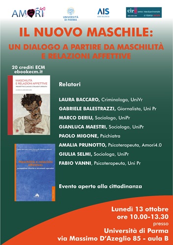 PARMA – Come vivono gli uomini di oggi le emozioni e relazioni? Quali sono i principali cambiamenti che influenzano la loro vita affettiva, familiare e sociale? Lunedì 13 ottobre 2025, dalle ore 10.00 alle 13.30, l’Università di Parma ospiterà nell’Aula B di via Massimo D’Azeglio 85, l’incontro dal titolo “Il Nuovo Maschile: un dialogo a partire da maschilità e relazioni affettive”.
