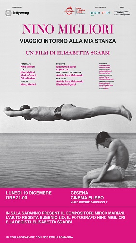 Frame patrocinata dal Comune di Cesena e con il sostegno di Romagna Iniziative è un progetto di Serena Amatori e Monogawa e ha scelto di concludere con un serata di grande valenza artistica con la proiezione del documentario Nino Migliori viaggio intorno alla mia stanza di Elisabetta Sgarbi, con ospiti in sala lo stesso Nino Migliori, la regista Elisabetta Sgarbi, l’aiuto regista Eugenio Lio e l’autore della colonna sonora Mirco Mariani degli Extraliscio, incontro realizzato in collaborazione con Fice Emilia Romagna all’interno di Riusciranno i nostri eroi, i nuovi autori italiani incontrano il pubblico. In questo film Migliori si racconta per la prima volta nello spazio del suo atelier bolognese in via Bernardi, ripercorrendo la sua vita artistica e personale, le sue imprese e le sue sperimentazioni. “È la storia di un film mio e non mio. È un film su Nino Migliori che, sin da subito, sfugge di mano, e diventa un film di Nino Migliori”, commenta Elisabetta Sgarbi. Con la complicità di Marina Truant, direttrice della Fondazione Nino Migliori, e le musiche di Mirco Mariani, che ha tradotto in note l’elettricità che si è respirata sul set. Nel film anche Gilda Mariani, già musa dei film di Elisabetta Sgarbi e ora anche di Migliori. Nino Miglioriè uno tra i più autorevoli e multiformi ricercatori italiani nel campo della fotografia, con uno dei percorsi più interessanti della cultura d’immagine europea. Nella sua produzione artistica si intrecciano fin dall’inizio diversi filoni di ricerca, ma è la sperimentazione il tratto fondamentale che caratterizza da sempre il suo operato.