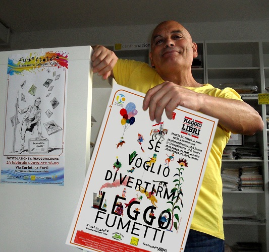 (fotografia il Fumettotecario Gianluca Umiliacchi alla Fumettoteca Alessandro Callegati “Calle”)