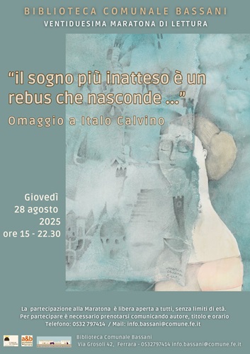 FERRARA – Sarà dedicata all’opera dello scrittore Italo Calvino la ventiduesima maratona di lettura in programma giovedì 28 agosto 2025 dalle 15:00 alle 22:30 alla Biblioteca Giorgio Bassani di Ferrara (via Grosoli 42, quartiere Barco, Ferrara).