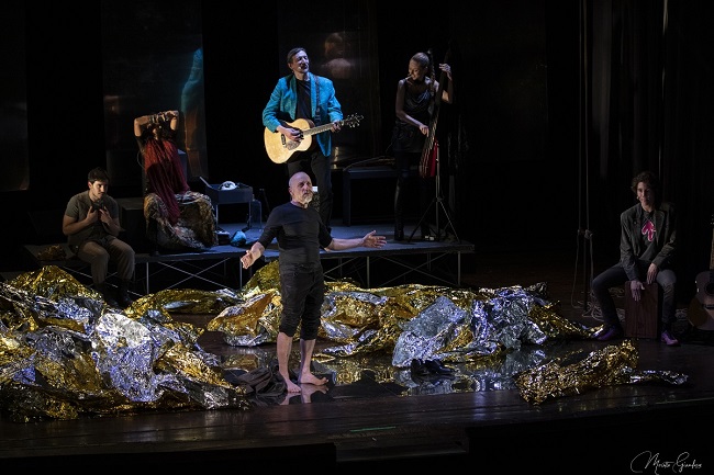 «Le nozze di Cadmo e Armonia, il libro di Roberto Calasso, porta in epigrafe una frase di Sallustio: queste storie non avvennero mai, ma sono sempre – commenta il regista Gabriele Vacis –. Quel bellissimo libro di Calasso raccontava il rapporto tra gli dei e gli uomini. Gli dei, nella Grecia classica, erano personaggi della vita quotidiana. Con tutti i pregi e i difetti degli umani. Non è facile, per noi moderni, comprendere questa consuetudine con le divinità. […] E noi? Adesso? Oggi dove sono gli dei? Dov’è Dio? La risposta esatta che si doveva dare al catechismo non contraddice quello che voglio dirvi: dov’è Dio? In cielo, in terra e in ogni luogo. Quando Paolini ha cominciato a parlarmi di questo spettacolo mi ha chiesto di leggere Homo deus di Yuval Noah Harari. Lì si trova una risposta che non contraddice quella del catechismo: adesso gli dei siamo noi. Siamo noi occidentali ricchi che facciamo i temporali e abitiamo in chiese preziosissime: New York, Parigi, ma anche Dubai o Seul… Siamo noi che, discrezionalmente, senza bisogno di motivi razionali, decidiamo dove devono stare gli umani e come devono starci. Il libro di Calasso è importante perché racconta l’ultima volta in cui gli umani e gli dei si sono seduti, insieme, allo stesso banchetto. Poi sono cominciati i muri. Da una parte gli dei, dall’altra gli uomini. E in mezzo c’è Ulisse, un uomo che ha un rapporto privilegiato con gli dei grazie alla sua intelligenza, alla sua arguzia. L’Ulisse che vorremmo raccontare è quello che ha già vissuto tutte le sue peripezie, è un vecchio di oggi: ancora molto in gamba, consapevole ma senza futili illusioni. È un saggio confuso e disorientato che ha bisogno di continuare a comprendere, nonostante tutto. È un Ulisse che, finalmente, prova ad ascoltare sua moglie, suo figlio, che prova a comprendere persino gli dei capricciosi che si sono giocati il suo destino. Per questo, in scena, Marco non sarà solo. Sartre diceva che l’inferno sono gli altri. Questo anziano Ulisse ha bisogno di comprendere quell’inferno che sono gli altri.»