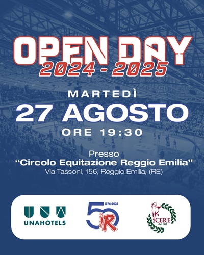L’attesissimo Open Day, la giornata in cui i biancorossi incontreranno per la prima volta i tifosi, si svolgerà come da tradizione sempre al Circolo Equitazione Reggio Emilia (via Tassoni 156) nel tardo pomeriggio di martedì 27 agosto.