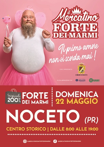 Appuntamento, quindi, domenica 22 maggio a Noceto, con i due consorzi insieme:Il Mercatino da Forte dei Marmi, più giovane e glamour e Il Mercato del Forte, rinomato per la sua lunga tradizione.
