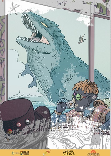 MODENA – Da lunedì 12 a domenica 18 novembre il Mese della scienza delle biblioteche comunali modenesi si sposta con molte iniziative nella piazzetta del Centro commerciale “la Rotonda” in via Morane 500 a Modena, dove ha sede anche l’omonima biblioteca civica decentrata. Per tutta la settimana saranno esposte in mostra le tavole in grande formato “Dinosauri nello spazio” di Capitan Artiglio, fumettista torinese formatosi in ambito musicale e noto per i suoi “dinosauri western”. L’inaugurazione, lunedì 12 alle 17, è accompagnata dalla conversazione di Roberto Lei “Spaventose creature preistoriche tra parole e immagini”, e da un atelier con il giovane fumettista modenese Stefano Lei.