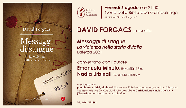 David Forgacs presenta il suo ultimo libro alla corte della Biblioteca Gambalunga, venerdì alle ore 21