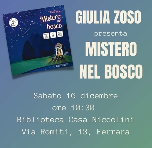 FERRARA – Si intitola “Mistero nel bosco” la storia protagonista della lettura animata in programma sabato 16 dicembre 2023, alle 10.30, alla biblioteca comunale Casa Niccolini (via Romiti 13, Ferrara). Nel corso dell’incontro, pensato per bambini dai 4 ai 7 anni, l’autrice Giulia Zoso intratterrà i piccoli partecipanti facendo conoscere loro questa storia.