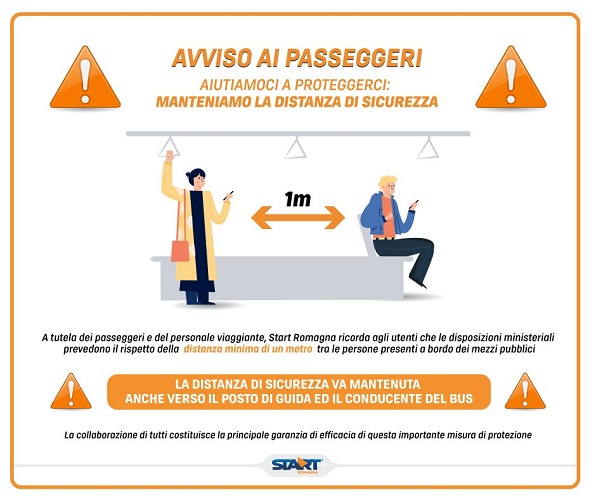 - sono presenti comunicazioni a bordo per il rispetto della distanza richiesta dalle disposizioni nazionali;