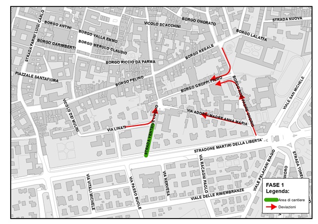 I veicoli accederanno in Strada XXII Luglio attraverso Borgo Padre Onorio, Strada Madre A.M. Adorni (con senso di marcia opportunamente modificato), oppure Borgo Primo Groppi.