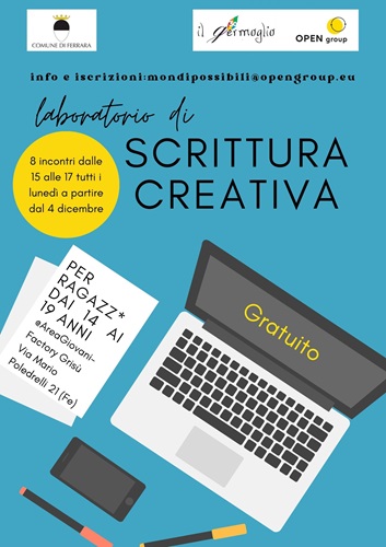 FERRARA – È pensato per ragazzi dai 14 ai 19 anni il corso di scrittura creativa che prenderà il via il prossimo 4 dicembre 2023 nella sede di Area Giovani – Factory Grisù, in via Poledrelli 21, a Ferrara.