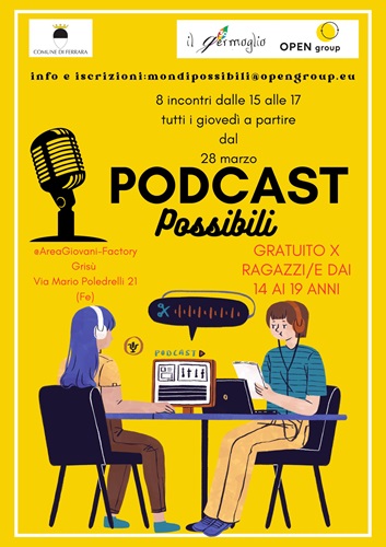 FERRARA – È rivolto a ragazzi dai 14 ai 19 anni il Laboratorio di Podcast, proposto nell’ambito del progetto ‘Mondi Possibili’, da giovedì 28 marzo 2024, dalle 15 alle 17 con otto incontri gratuiti tutti i giovedì.