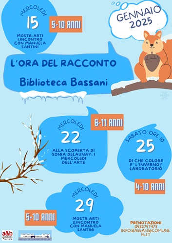 Mercoledì 15 e mercoledì 29 gennaio 2025 alle 17 appuntamenti per i bambini dai 5 ai 10 anni e le loro famiglie in via Grosoli 42 (Barco, Ferrara). Aperte le iscrizioni