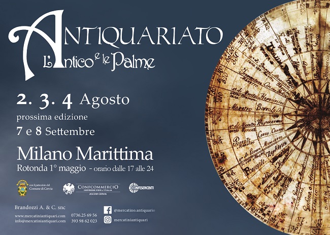 CERVIA – MILANO MARITTIMA – Arriva a Milano Marittima la seconda data estiva de L’Antico e le Palme, la manifestazione antiquaria più famosa della riviera adriatica che ormai da 5 anni accompagna l’estate della città-giardino romagnola.