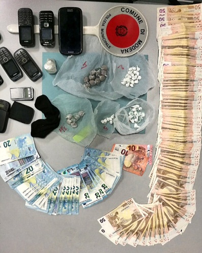 Al termine dei controlli gli operatori della Polizia municipale hanno sequestrato quasi 100 dosi tra cocaina ed eroina pronte per la vendita, un piccolo panetto di eroina pura ancora da dividere in dosi, numerosi telefoni cellulari, due bilancini di precisione, e poco più di ottomila euro, rinvenuti dentro cappotti custoditi nell’armadio: una cifra potenzialmente frutto di attività illecita, considerando che l’uomo non è risultato svolgere alcuna attività lavorativa.