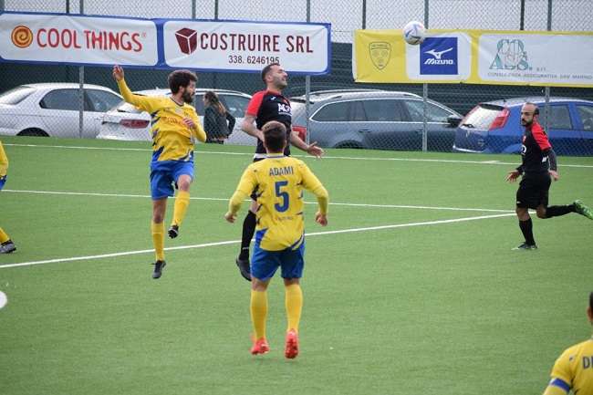 LA PARTITA Il recente successo per 4-1 sul Cailungo restituisce fiducia in casa Folgore e l’inizio del match di Coppa è in linea con le aspettative. Dopo 8 minuti Manzaroli stende Montanari senza intervenire sul pallone, Avoni non concede un rigore apparso netto bensì il corner. L’episodio fa discutere, ma dopo un quarto d’ora viene “vendicato” dal gran gol di Serafini, che cerca e trova il primo palo e porta avanti i suoi. Una disattenzione, tuttavia, costa caro, perché un pallone destinato a terminare sul fondo viene addomesticato da Valentini, che lo trasforma nell’assist del pareggio per Gjorretaj. L’ingenuità difensiva costringe Piscaglia e compagni a ricostruire il gioco per ottenere un nuovo vantaggio. Si giunge così alla ripresa con una situazione di sostanziale equilibrio, nella quale i portieri si rendono protagonisti di alcune parate decisive, in particolare Pollini su Gaiani e Manzaroli su Serafini. Lepri si gioca la carta Mami e in effetti il neo entrato potrebbe diventare l’uomo partita quando elude l’intervento di Manzaroli, ma non trova il varco per cercare la conclusione, allora serve Di Marzio e il pallone termina alto. L’ultimo sussulto proprio del numero 22, che non inquadra il bersaglio.