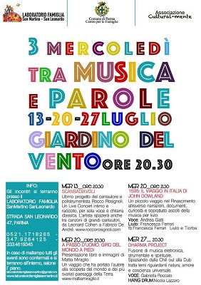 Una cornice intima e un po’ retrò, quella del Giardino del Vento che nei prossimi mercoledì di luglio ospiterà: