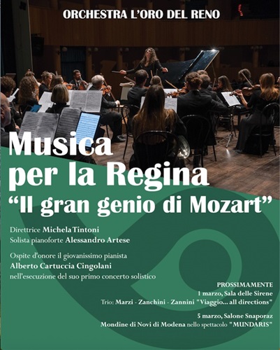 Si debutta martedì 28 novembre al Teatro della Regina alle ore 21.00 con un concerto sinfonico dedicato all’immenso genio creativo di Wolfgang Amadeus Mozart. Protagonista l’orchestra L’Oro del Reno diretta da Michela Tintoni nell’interpretazione della Sinfonia n 41 k 551 in Do Magg. “Jupiter” e del Concerto per pianoforte e orchestra n.23 k 488 in La Magg, solista Alessandro Artese.