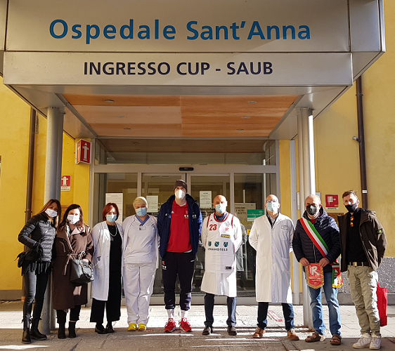 Stessa cosa all’Ospedale “Sant’Anna” di Castelnovo ne’ Monti, dove il socio biancorosso Andrea Baroni e Justin Johnson hanno presenziato alla consegna del pranzo ai reparti covid e di pediatria e portato i propri doni al reparto. Presenti anche il Sindaco di Castelnovo ne’ Monti Enrico Bini, il dottor Antonio Poli, Direttore dell’Ospedale, ed il dottor Aurelio Negro, responsabile del reparto Covid.