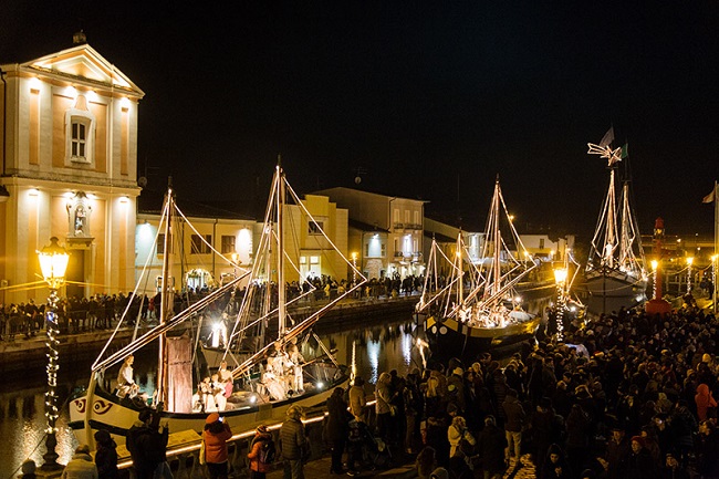 A Cesenatico, durante il periodo delle festività, si potrà ammirare il tradizionale Presepe della Marineria. Allestito sulle imbarcazioni della Sezione Galleggiante dell’omonimo Museo, nel tratto più antico del Porto Canale, su dieci barche che rappresentano le tipologie tradizionali del mare, con le caratteristiche decorazioni e gli “occhi” sulla prua.