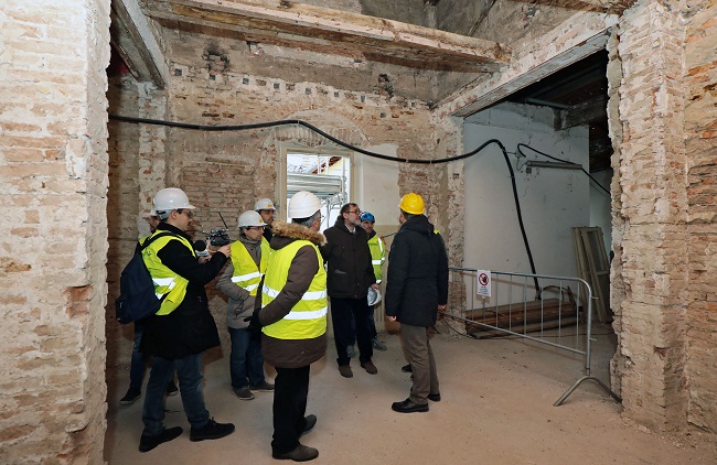 Sopralluogo per verificare l’andamento dei lavori per riportare la scuola nella sede storica di via Saragozza. Fino al 20 febbraio una mostra in Municipio