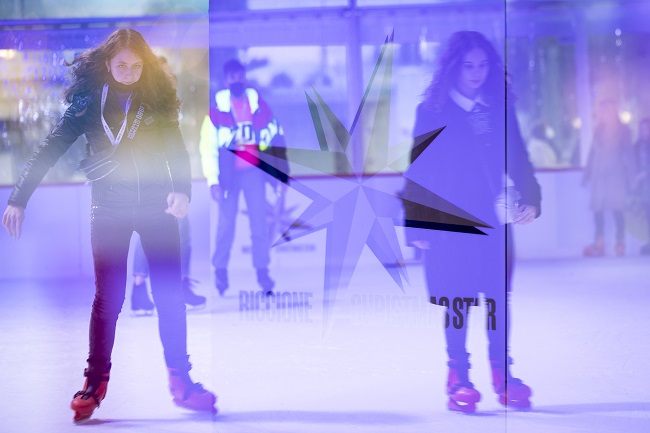 RICCIONE – Quello con il Comune di Riccione è un binomio che già lo scorso anno aveva stupito i visitatori raggiungendo ampia visibilità a livello nazionale e oggi, alla luce del successo del primo week end di eventi, c’è da giurare che se ne parlerà ancora a lungo. Per la “perla verde dell’Adriatico, in occasione delle celebrazioni per i 100 anni della Città, Viale Ceccarini diventa il “Viale delle Stelle” e si illumina grazie ad un’installazione immersiva. Sul viale più glam d’Italia trovano spazio 14 imponenti abeti luminosi e un cielo stellato da oltre 400.00 led bianco ghiaccio protagonisti degli live show immersivi che nei week end e nei festivi si accendono ogni ora (dalle 17 alle 20) per un’esperienza indimenticabile di luci, musica, neve ed effetti speciali. NexTime Eventi ha installato a Riccione anche una pista del ghiaccio da record, 675mq di superficie in collaborazione con il partner Ice4Fun di Maurizio Guerra.