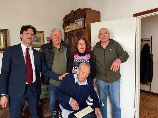 Ieri pomeriggio a Miramare, l’Assessore Mattia Morolli ha reso omaggio al centenario, consegnandogli una medaglia celebrativa e il biglietto di auguri personale del Sindaco, in un momento di calore istituzionale e di festa per lo straordinario traguardo raggiunto.