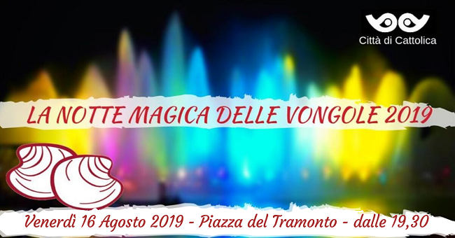 CATTOLICA (RN) – Torna l’appuntamento con la “Notte magica delle Vongole” di Cattolica. Dopo il rinvio a causa delle avverse condizioni meteo dello scorso 27 luglio, la manifestazione si svolgerà in Piazza del Tramonto il prossimo venerdì 16 agosto.