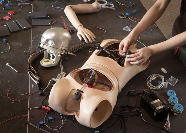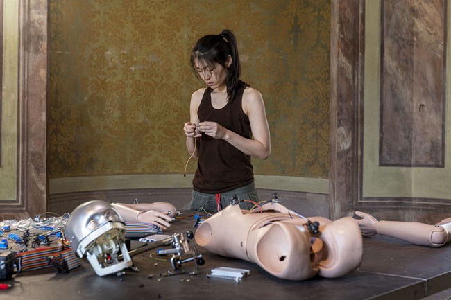 Come suggerisce il titolo della mostra, questo nuovo gruppo di opere è il prosieguo di una narrativa allegorica intrapresa lo scorso anno. Questi robot meccanici a controllo remoto sono costruiti con caratteristiche visive e strutturali simili a quelle dei “modelli” precedenti, ma possiedono una maggiore varietà di movimenti grazie a una progettazione che, oltre ad aumentarne la flessibilità, controlla anche lo strano aspetto di alcune parti del loro corpo. Le sculture sono collocate su una serie di piani di lavoro modulari che trasformano le sale della Palazzina dei Giardini in un unico palcoscenico e al tempo stesso in un’officina che l’artista utilizzerà concretamente nel corso della mostra. Grazie a questa specifica ambientazione spaziale, l’opera non è solo una statica rappresentazione del luogo in cui Jeong svolge test ed esperimenti sui propri “giocattoli”, ma si trasferisce, tramite l’azione dell’artista, in una serie di video che agiscono come tutorial, appositamente prodotti e disposti lungo il percorso espositivo.