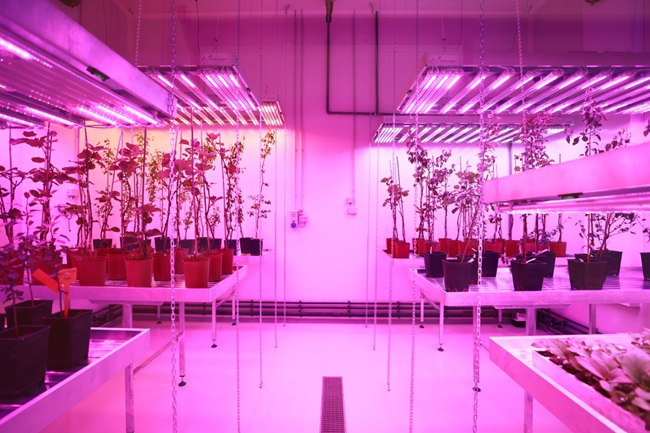 I biotroni rappresentano una delle più avanzate infrastrutture dedicate alla ricerca in ambito vegetale, un laboratorio sperimentale di ultima generazione per lo sviluppo di sistemi di coltivazione innovativi, sostenibili ed efficienti. Il cuore della struttura è costituito da sei camere climatiche di 24 metri quadri ciascuna, all’interno delle quali è possibile replicare e monitorare condizioni di temperatura, umidità, concentrazione di anidride carbonica e ventilazione. L’illuminazione a LED, regolabile, si adatta alle diverse esigenze di crescita delle colture; accanto ad essa il sistema di fertirrigazione a circuito chiuso consente l’impiego di soluzioni nutritive specifiche e il recupero del drenaggio, che viene sanificato, corretto e reimmesso nel ciclo produttivo. Un sistema di monitoraggio dei consumi permette un’analisi dettagliata dell’impatto energetico di ogni componente e lo sviluppo di strategie di ottimizzazione sempre più efficaci. Il laboratorio consente di simulare scenari ambientali complessi e dinamici, utili per studiare la risposta delle colture ai cambiamenti climatici e sviluppare sistemi di coltivazione innovativi ed efficienti.