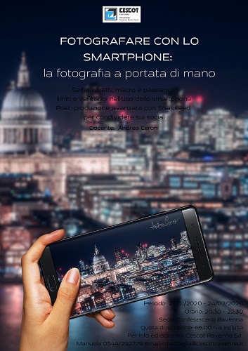 Cescot Ravenna, scuola d’impresa della Confesercenti, nel programma dei corsi in calendario in questa stagione propone un nuovo corso di fotografia per smartphone.