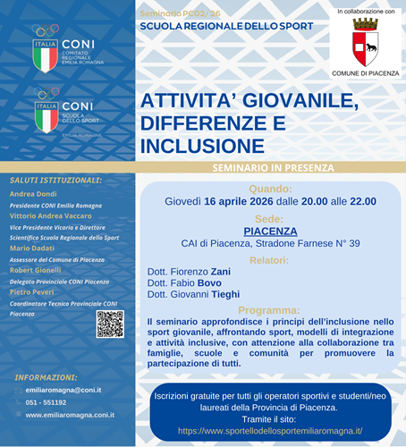 L’iscrizione, necessaria per ragioni organizzative, è gratuita per tutti gli operatori sportivi, gli studenti o neo laureati residenti a Piacenza.