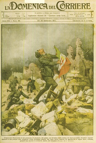 MODENA – In copertina c’è l’immagine eroica, tratta da una tavola della Domenica del Corriere del 1917, di Garibaldi Franceschi, un giornalista di origini modenesi che si arruolò come allievo ufficiale nella Prima guerra mondiale e venne ucciso mentre, con in pugno il tricolore, guidava il suo plotone alla conquista di una posizione militare, le rovine di Castavegnizza. Proprio alle vicende dei tanti giornalisti italiani caduti un secolo fa nella Grande guerra è dedicato il volume “Martiri di carta” che viene presentato lunedì 5 novembre, alle 16.30, nella sala di Rappresenta del Municipio di Modena, in piazza Grande.