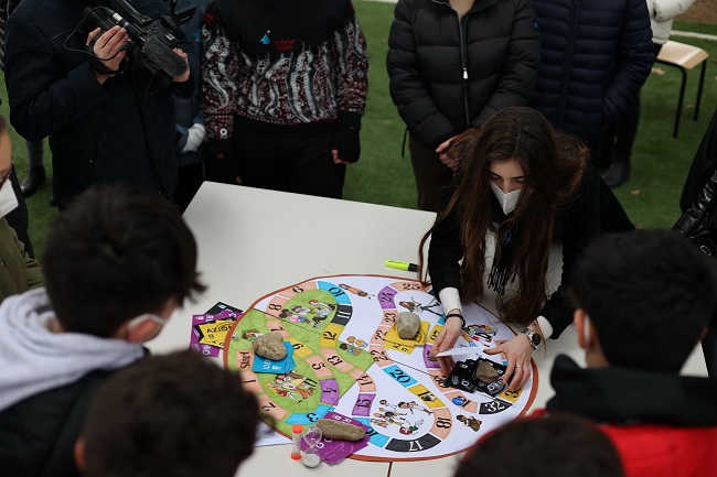 Questa mattina i ragazzi delle terze medie della scuola media Borgese hanno ospitato gli alunni della III A liceo linguistico Cesare Valgimigli per giocare a ‘Bulloinballo’ il gioco di gioco di società ideato dagli studenti e utile a dialogare sul fenomeno. Insieme, i 120 ragazzi ragazzi hanno anche indossato il ‘nodo blu’, simbolo della giornata.