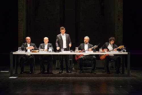 Storie vere che Tahar Lamri e Luigi Dadina, nati rispettivamente il 24 e il 25 dicembre del 1958, il primo ad Algeri, il secondo a Ravenna, hanno deciso di raccontare nella “Conferenza sul Marzo” per ripercorre la tragedia della Mecnavi, concentrandosi sulla dignità dell’essere umano in relazione al lavoro. Con loro sul palco tre musicisti, Francesco Giampaoli e Diego Pasini rispettivamente al basso e percussioni e Lanfranco-Moder-Vicari, a interpretare un rap che assume un ruolo centrale nella tessitura drammaturgica di questa ‘conferenza’ che vede attori e musicisti, dietro a un lungo tavolo, ognuno coi propri strumenti, ognuno col suo vero nome.