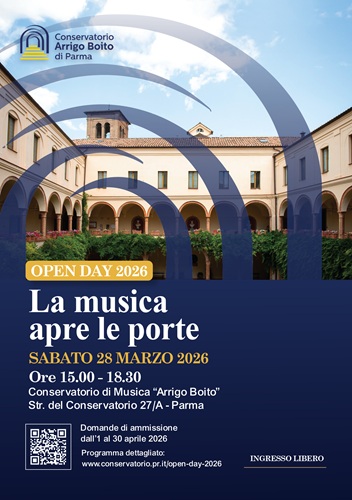 In vista dell’apertura delle iscrizioni, il Conservatorio di Musica “Arrigo Boito” di Parma accoglie i visitatori per l’Open Day. Sabato 28 marzo 2026 dalle 15.00 alle 18.30, presso la sede di Strada del Conservatorio 27/a, sarà possibile assistere a lezioni aperte, incontrare docenti, studenti, lo staff della Segreteria Didattica e vivere l’atmosfera del Conservatorio. Dopo i saluti di benvenuto del Direttore Massimo Felici (ore 15.00 in Auditorium del Carmine), il pomeriggio sarà arricchito anche da momenti musicali con l’Orchestra del Conservatorio di Musica “Arrigo Boito” diretta dalla Prof.ssa Carla Delfrate e la Wind Band dell’Istituto diretta dal Prof. Andrea Saba.